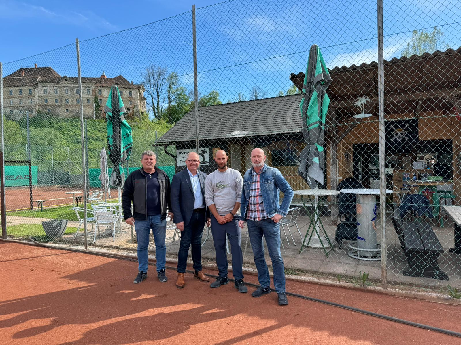 Bürgermeister Bernd Osprian hat heute unsere Tennisinsel besucht und sich ein Bild von unserer sehr schönen, aber auch etwas renovierungsbedürtigen Anlage gemacht. Er hat zugesagt sich für Unterstützung einzusetzen.