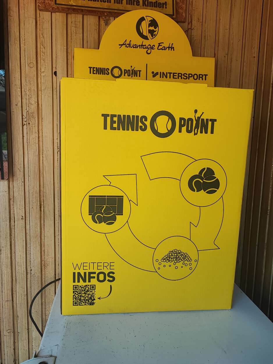 Bitte werft eure abgespielten Bälle nicht in den Müll, sondern in die gelbe Box. Die Bälle werden abgeholt und professionell recyclet. Für eine grüne Insel. Danke!